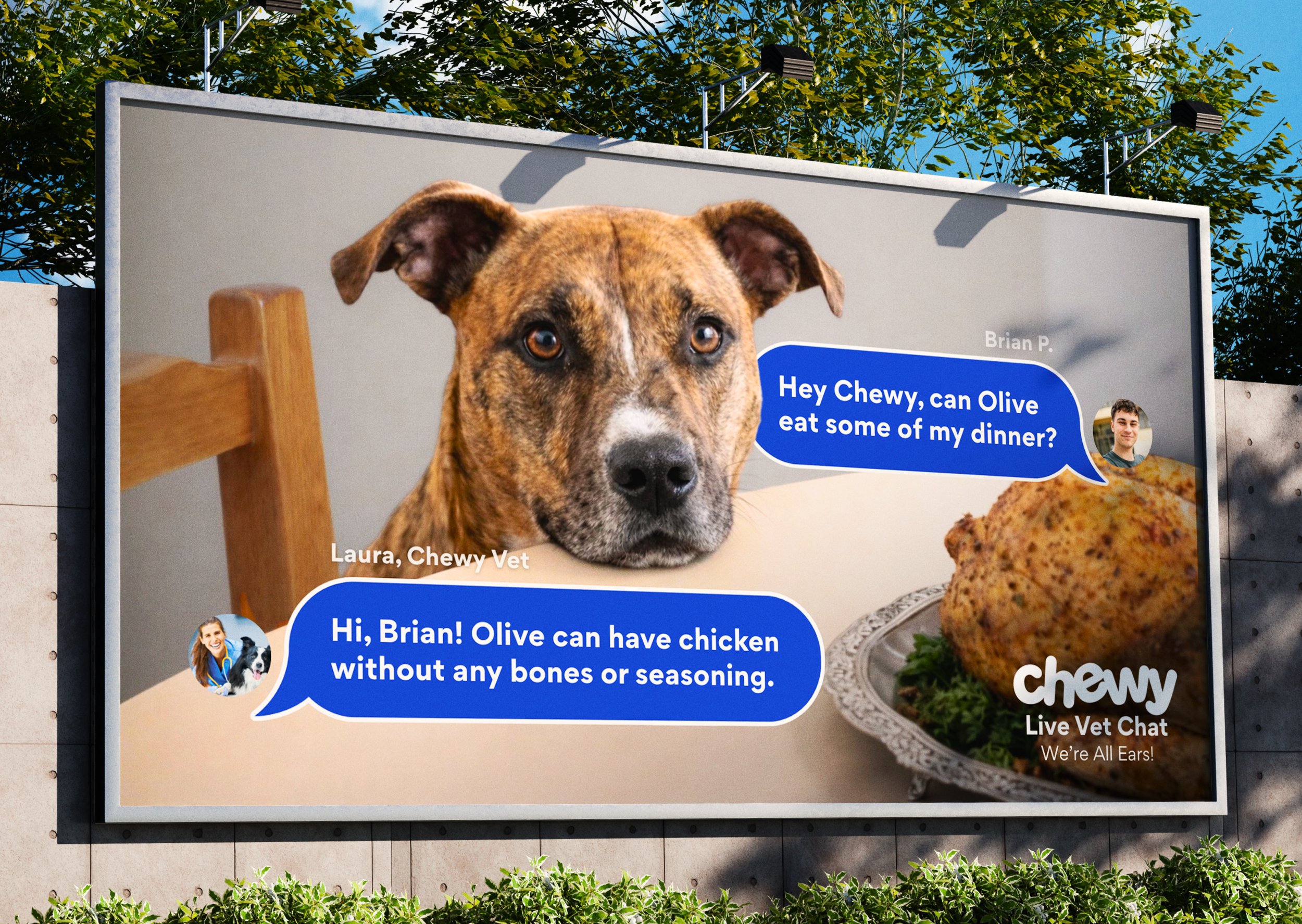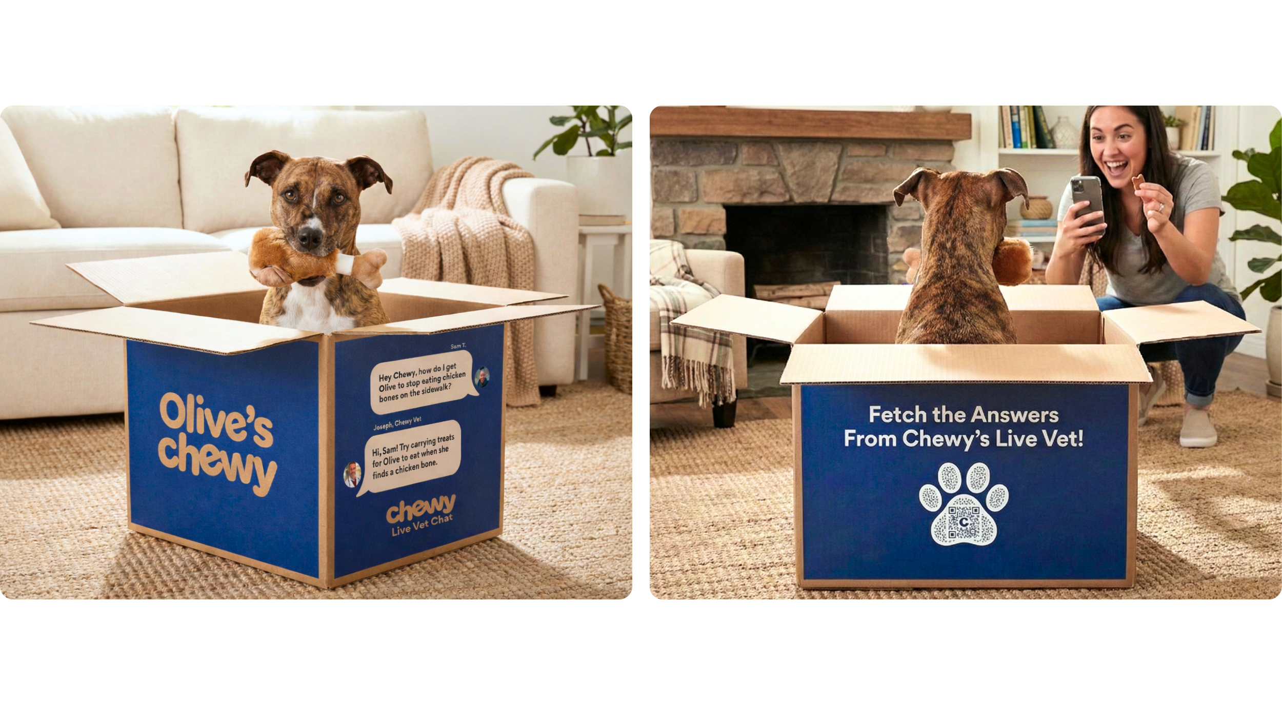What better place to advertise for Chewy’s Live Vet Chat than on the iconic blue Chewy box?